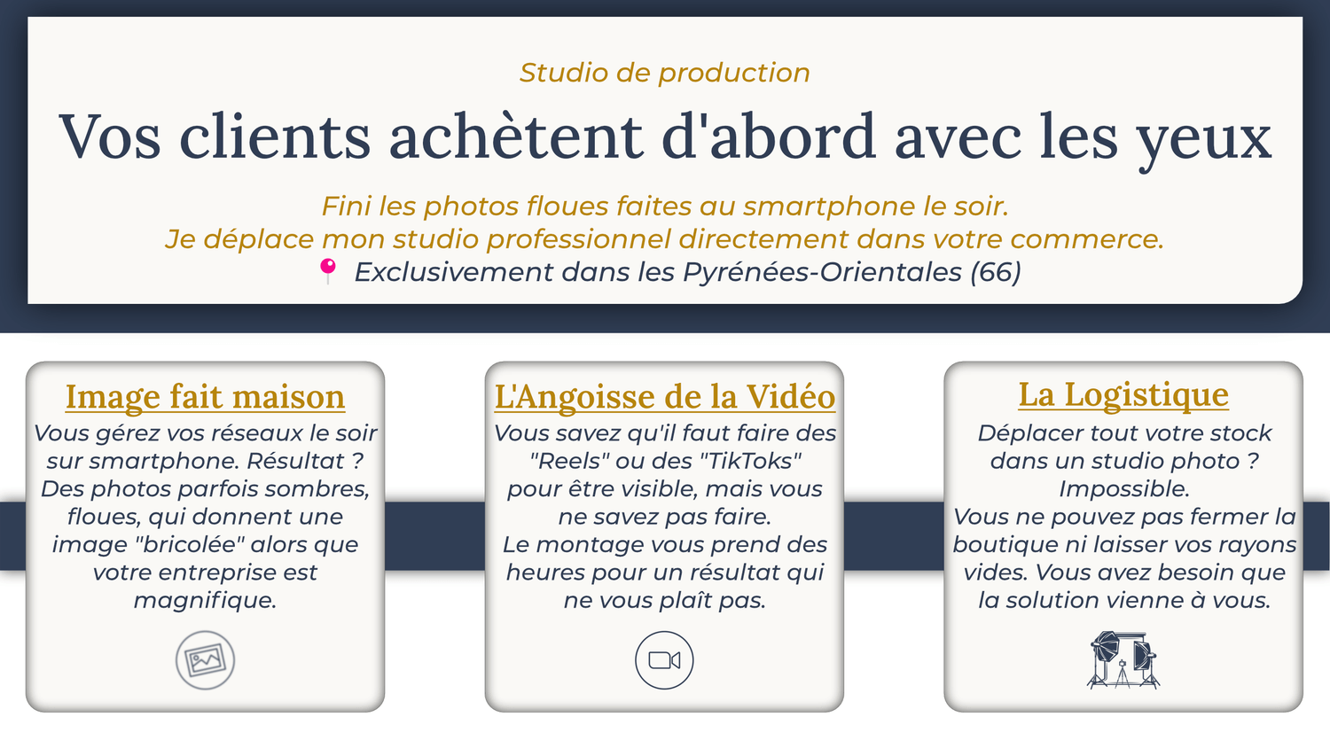 Je déplace mon studio professionnel directement dans votre commerce (66).